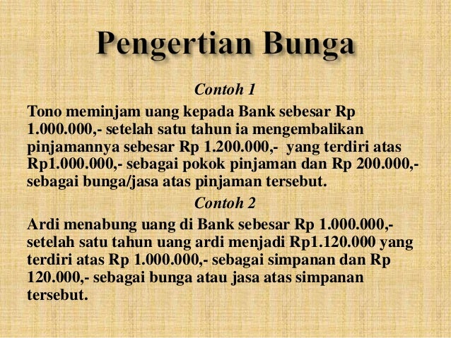 Debitur perlu tahu jenis cara perhitungan suku bunga kpr. Bunga tunggal adalah bunga yang timbul pada setiap akhir jangka waktu tertentu yang tidak mempengaruhi besarnya modal (besarnya modal tetap). Jika kita memperhatikan suatu bunga, mudahlah diketahui bahwa bunga adalah penjelmaan suatu tunas (batang dan. Definisi bunga bangsa adalah seseorang yang telah wafat dan. N ek imbalan jasa untuk penggunaan uang atau modal yang dibayar pada waktu tertentu berdasarkan ketentuan atau kesepakatan, umumnya dinyatakan sebagai persentase dari modal pokok.